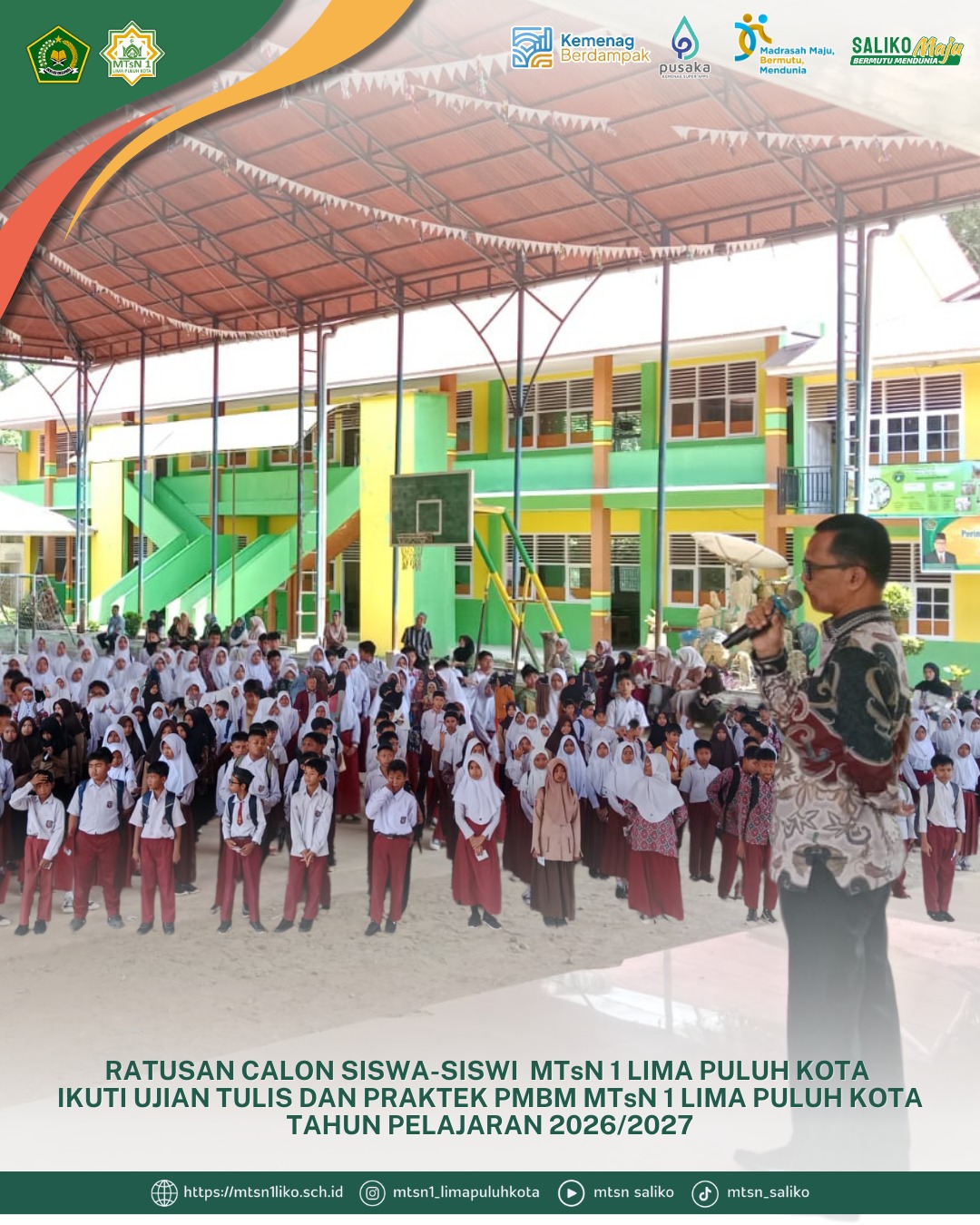 Sebanyak ratusan calon peserta didik mengikuti ujian tulis dan ujian praktik dalam rangka Penerimaan Murid Baru Madrasah (PMBM) di MTsN 1 Lima Puluh Kota pada Rabu, 11 Maret 2026. Kegiatan seleksi ini...